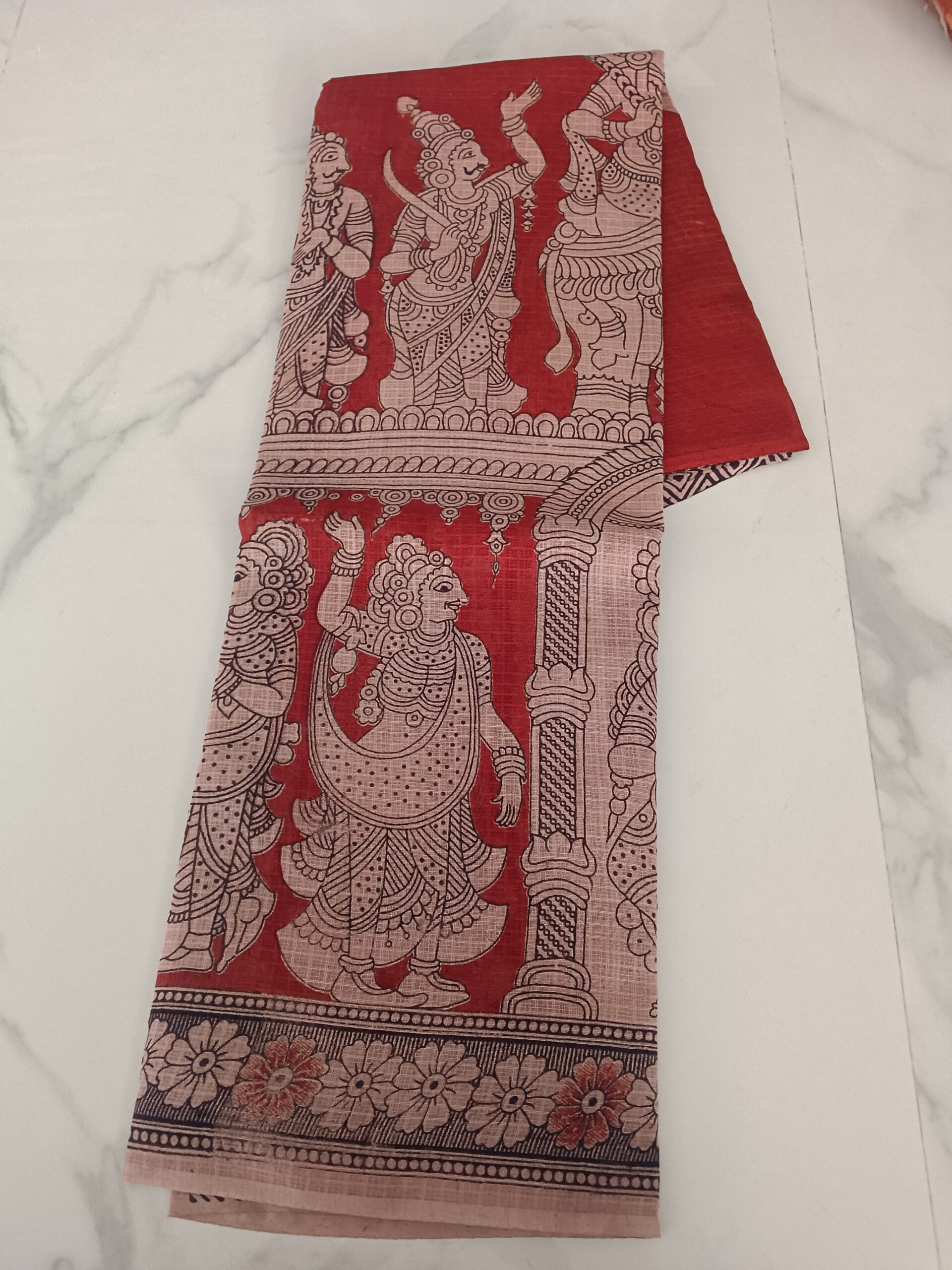 Be the first to review “Red Temple Dancer Kalamkari Cotton Saree”